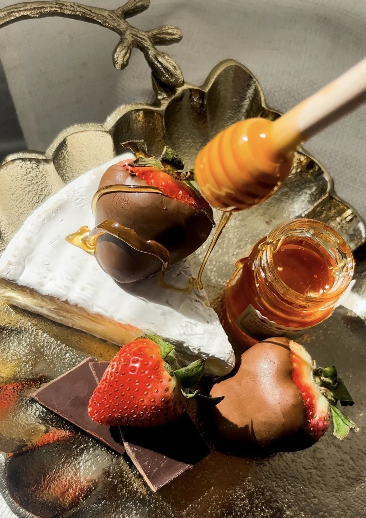 Hand-dipped strawberries, a beautiful addition to any board.